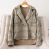 Retro Rutig Dubbelsidig Ulljacka För Kvinnor – Tidlös Design i Högkvalitativ Ull